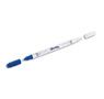 Un côté effaceur pointe ogive, un autre côté réécriveur pointe fine, encre bleue.