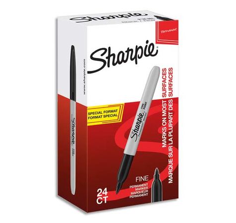 Encre permanente à séchage rapide. Résiste à l'eau, sans xylène ni toluène. Utilisable sur tous supports. Corps plastique grip, capuchon avec clip à la couleur de l'encre. Pack 22 + 2