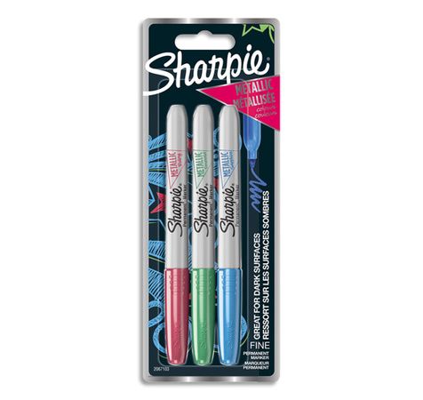 Pochette de 3 couleurs asssorties métallisées : vert, bleu et rouge. Encre permanente à séchage rapide. Résiste à l'eau. Utilisable sur tous supports. Corps plastique, capuchon avec clip à la couleur de l'encre. Conditionnement conseillé par 12