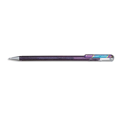 Encre gel métallique, 2 effets de couleur. Reflète une couleur différente sur fond clair ou sombre. Ecriture douce et nette, lignes lumineuses et scintillantes. Corps transparent métallisé à la couleur de l'encre. Pointe 1 mm.