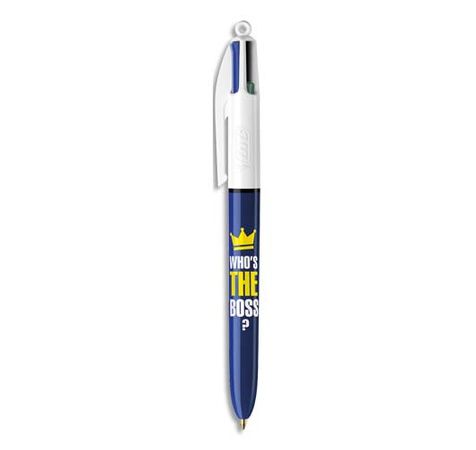 Stylo bille 4 couleurs MESSAGE Who is the Boss. Pointe moyenne rétractable et rechargeable