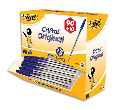 Pack de 90 Stylos à bille Bic Cristal® Classique encre bleue + 10 offerts