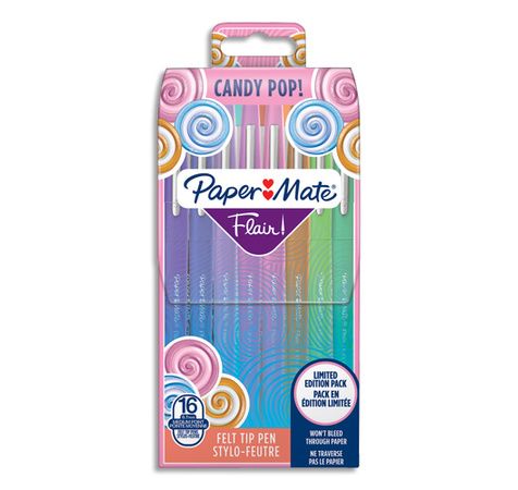 Pochette de 16 couleurs Candy Pop : rouge, mocca, mandarin, bleu surf, vert clair, papaye, fruit de la passion, noir, jaune foncé, framboise, fraise, caramel, vert chewing gum, bleu barbe à papa, raisin, lilas.