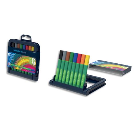 Link It Stylo fineliner pointe fine 0,4 mm et pointe feutre 1 mm. - Corps triangulaire de couleur vert foncé caoutchouté pour une parfaite tenu en main. Corps fabriqué à 88 % en bio-plastique. Pointe fineline 1,0 mm Pochette de 8