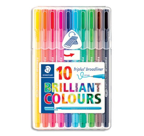 Pochette de 10 couleurs assortis : jaune, orange, rouge, violet, bleu foncé, bleu clair, vert, kaki, marron, noir