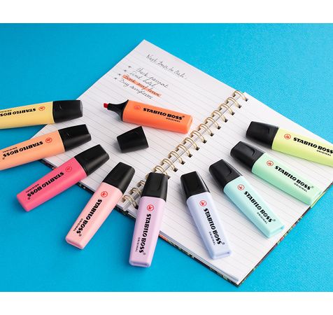 STA P/6 SURLI BOSS PASTEL ASS 70/6-2 301094 Pochette de 6 surligneurs pointes biseautées pastels 8,23 € TTC