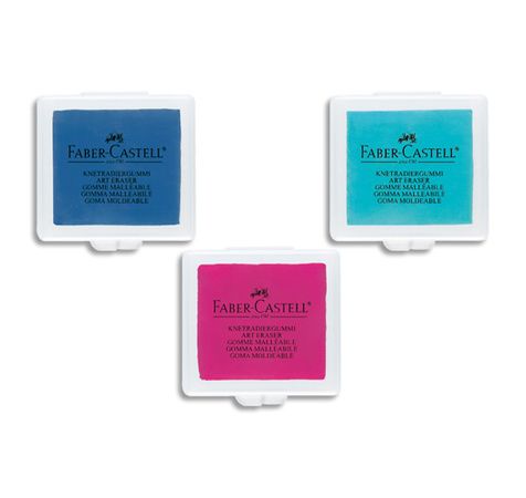 Gomme sectionnable et modelable. Pour éclaircir et corriger, pastel, fusain et crayon. Livrée dans un etui de protection. Coloris assortis aléatoires : turquoise, bleu et rose.