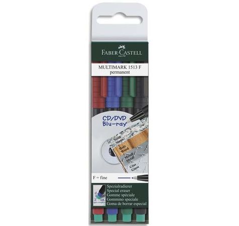 Feutre multi usage pour supports lisses. Résistance à la lumière. La gomme spéciale intégrée fonctionne sur toutes les surfaces lisses, les transparents et sur les CD/DVD.