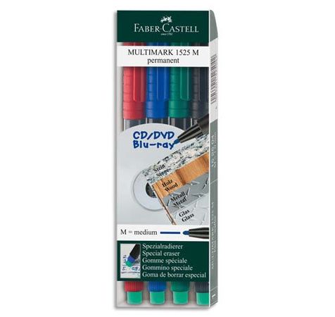 La gomme spéciale intégrée fonctionne sur toutes les surfaces lisses, les transparents et sur les CD/DVD. Feutre multi usage pour supports lisses. Résistance à la lumière. Conditionnement conseillé : 10