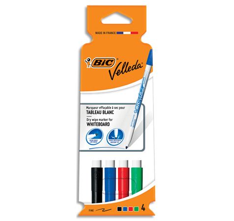 Pochette De 4 Feutres Effaçables À Sec Pointe Fine Encre Alcool 4 Couleurs Velleda 1721
