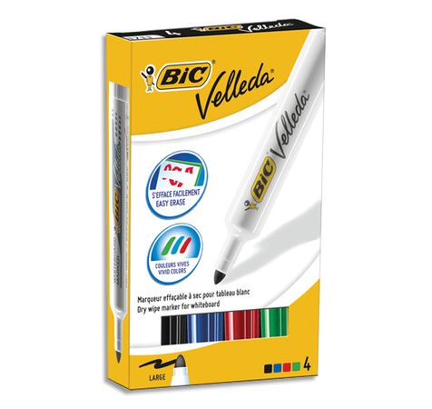 Pochette De 4 Marqueurs Effaçables À Sec Pointe Ogive Encre Cétone 4 Couleurs Assorties Velleda 1714