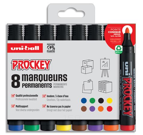 Pochette De 8 Marqueurs Permanents Pointe Ogive Encre Pigmentée À Base D Eau Uni Prockey
