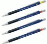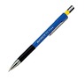 Corps plastique bleu, clip métal. Grip caoutchouc. Canon droit rentrant. Amortisseur anti-casse mines. Avance de la mine par bouton poussoir. Conditionnement conseillé : 10