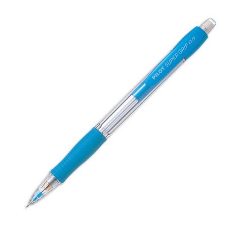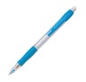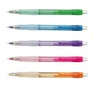 Corps plastique transparent. Clip et grip caoutchouc de couleur. Gomme protégée.