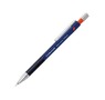 Corps plastique bleu, clip métal. Grip caoutchouc. Canon droit rentrant. Amortisseur anti-casse mines. Avance de la mine par bouton poussoir. Conditionnement conseillé : 10