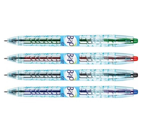 Bille encre gel rétractable. Corps plastique principalement issu du recyclage des bouteilles. Ecriture moyenne.