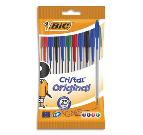 Paquet 10 Stylos à bille Bic Cristal® Classique pointe moyenne 4 couleurs