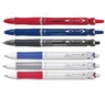 Bille indéformable, encre infalsifiable (à l'exception du rouge), rétractable. Grip ergonomique, clip plastique. Ecriture moyenne.