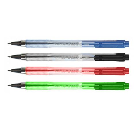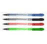 Bille indéformable. Embase antidérapante. Corps transparent teinté à la couleur de l'encre. Ecriture fine.