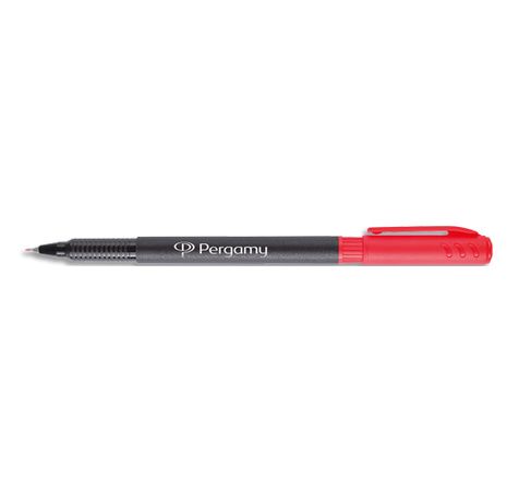 Pointe fine baguée métal. Régulateur de débit d'encre. Corps avec grip caoutchouc. Clip plastique à la couleur de l'encre. Conditionnement conseillé par 12 Rouge