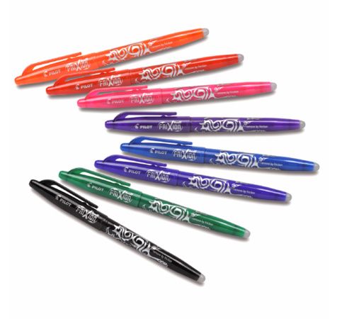 Écrivez ... FriXionnez... Recommencez autant de fois que vous voulez avec FriXion ! Écrivez en souplesse avec la bille moyenne de FriXion Ball, supprimez par échauffement sans abîmer le papier et recommencez sans attendre. Grâce à une nouvelle encre thermosensible brevetée, le FriXion Ball, fidèle à la tradition PILOT, révolutionne l'écriture. Il affiche un style jeune avec son corps fuselé et son décor tatoo proposé en dix coloris. Rechargeable - Ne pas utiliser sur documents officiels.