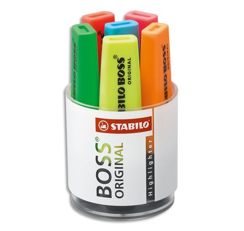 Pot À Crayons Garni De 6 Surligneurs Pointe Biseautée Assortis Boss
