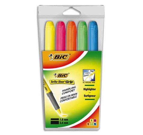 BIC PC/5 SURLIGNEUR GRIP ASSORTIS 896055 057388 Pochette De 5 Surligneurs Brirteliner Grip Assortis 5,75 € TTC