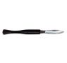Lame en acier inox trempé. Manche à virole en plastique noir. Manche avec 2 rivets. Longueur : 16 cm.