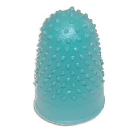 Doigtier avec picots en caoutchouc fins et serrés avec trous d'aération. Coloris : vert. Diamètre : 16 mm.