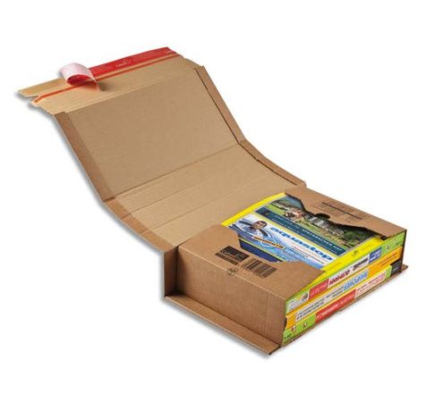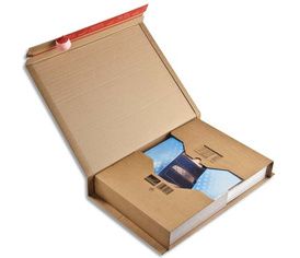 En carton ondulé. Protection renforcée des angles. Hauteur d'emballage variable jusqu'à 8 cm. Fermeture adhésive Colompac économisant du temps et ne nécessitant aucun autre moyen de fermeture. Bande d'arrachage pour une ouverture rapide et facile.