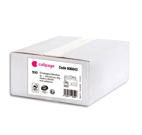 Boite 500 Enveloppes Nf Auto-Adhésive Blanc 80G, Format Dl 110X220, Fen 35X100