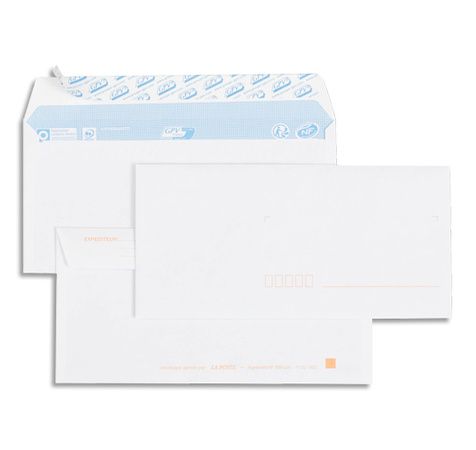 Boîte De 500 Enveloppes pré-casées 80gr Format 110X220 mm Auto-Adhésives