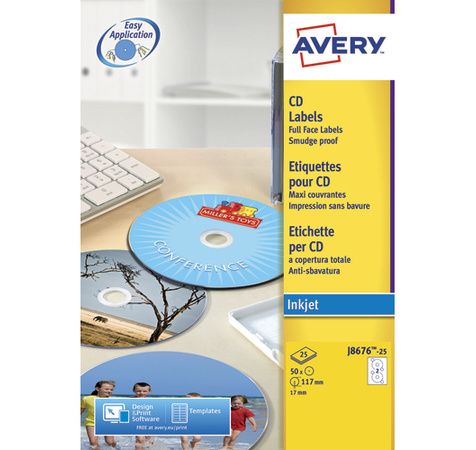 Boîte De 50 Étiquettes Jet D'Encre Monochrome Pour Cd Et Dvd J8676-25