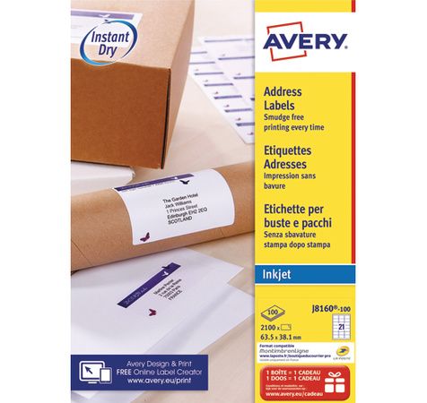Boite De 2100 Étiquettes Jet D'Encre Format 63,5X38,1mm