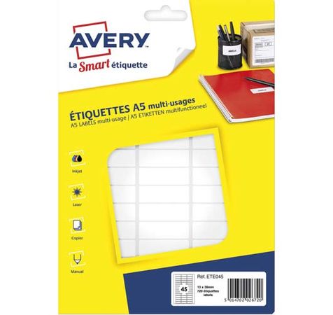 Sachet De 720 Étiquettes Multi-Usage Blanches 12,8 X 38 mm. Planche Format A5. Ete045
