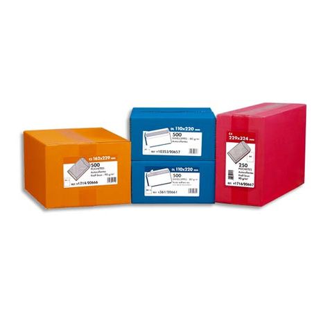 Boite de 500 enveloppes 80 g, blanches autocollantes ou auto-adhésives