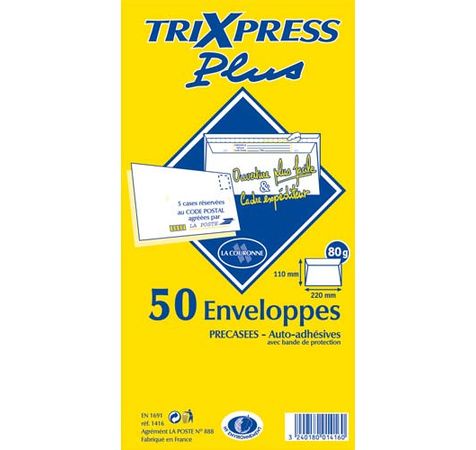 OXF P/50 ENV C6 PRECASE 80GADH 100103678 101167 Paquet De 50 Enveloppes Blanches 80G 114X162mm Auto-Adhésives & Pré-Casées 4,04 € TTC
