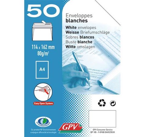 GPV PAQ/50 ENV C6 BLC 80G AUTOADH 6620 737874 Paquet De 50 Enveloppes Blanches 80G 114X162mm Auto-Adhésives 2,71 € TTC