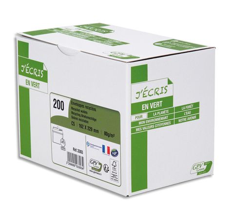Boîte de 200 enveloppes recyclées extra Blanches Erapure, format C5 162x229mm 80g