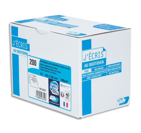 Extra blanc. Fond rayé bleu garantissant une parfaite confidentialité. Large patte pour une fermeture totale. Pré-découpe pour une ouverture rapide.