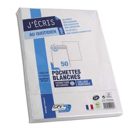 Paquet de 50 pochettes vélin blanc auto-adhésives 90g C4 229x324mm