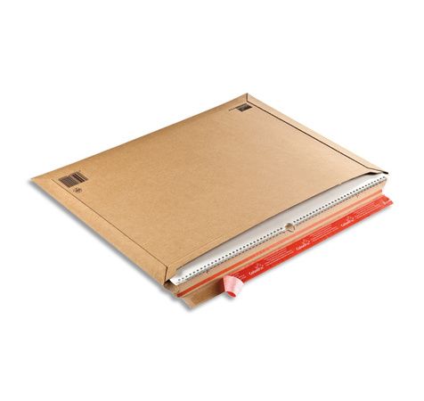 En carton ondulé rigide, renforcement des arêtes sur le pourtour. Fermeture adhésive, bande d'arrachage pour ouverture facile. Epaisseur de remplissage variable jusqu'à 5 cm.