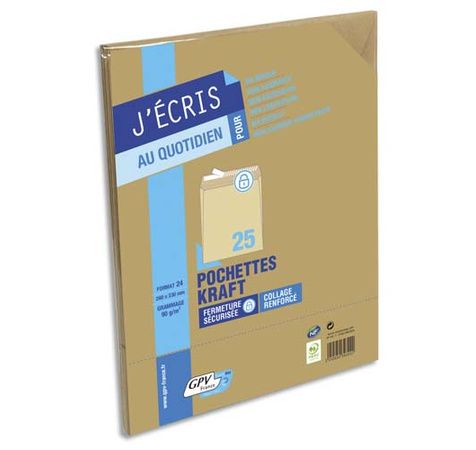 Paquet De 25 pochettes kraft Autoadhésif 90G format 24 260X330mm brun