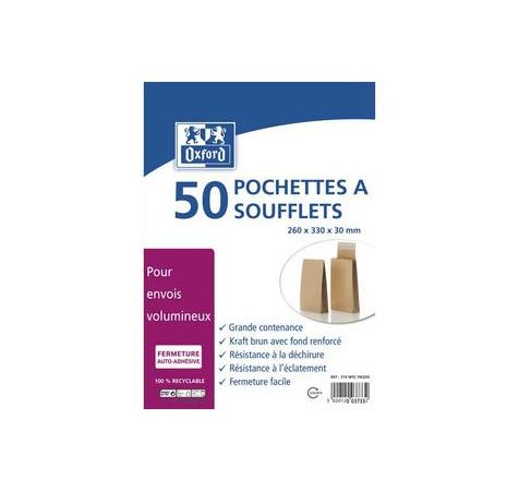 Economique et résistant, deux qualités : 90 g kraft brun et 120 g kraft brun ou blanc pour vos mailings. Pochettes kraft à soufflets 3 cm brun ou blanc. Fermeture auto-adhésive par bande siliconée.