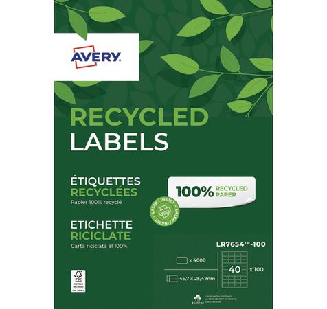 Boîte de 4000 étiquettes adresse Laser recyclées Blanc 45,7 x 25,4mm LR7654-100