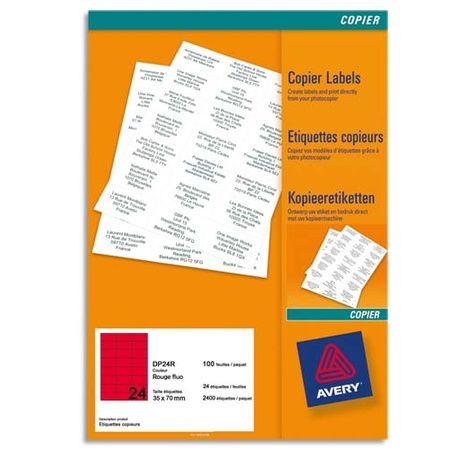 Boîte De 2400 Étiquettes Copieur 70X35 Rouge Fluo Dp24R-100