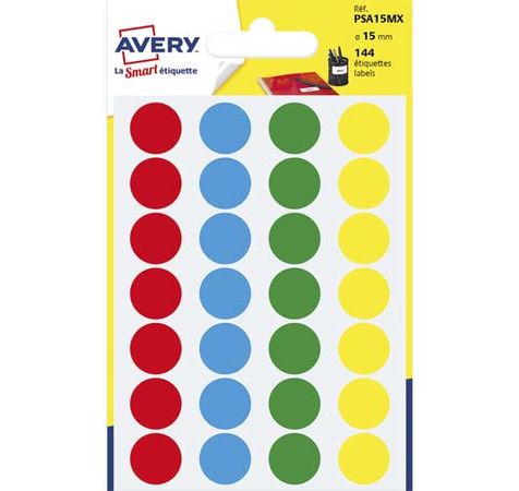 Sachet De 144 Pastilles Ø15 mm. Ecriture Manuelle. Coloris Assortis.