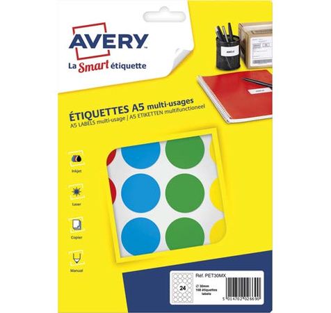 Compatible avec toute imprimante laser, jet d'encre, copieur. Idéale pour marquer vos documents : planning, inventaires, plans, etc. Feuille format A5 présentées sous sachet. Modèles et logiciels gratuits sur www.avery.fr