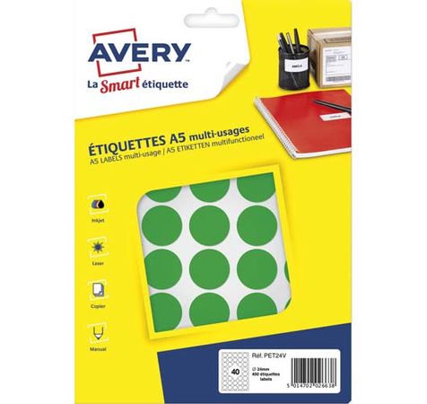 Compatible avec toute imprimante laser, jet d'encre, copieur. Idéale pour marquer vos documents : planning, inventaires, plans, etc. Feuille format A5 présentées sous sachet. Modèles et logiciels gratuits sur www.avery.fr