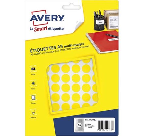 Compatible avec toute imprimante laser, jet d'encre, copieur. Idéale pour marquer vos documents : planning, inventaires, plans, etc. Feuille format A5 présentées sous sachet. Modèles et logiciels gratuits sur www.avery.fr